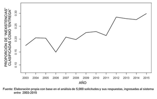 Figura 5. Proporción anual de “Inexistencias” disfrazadas como “Entrega”