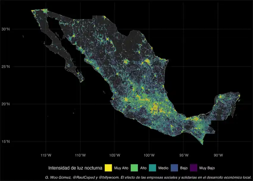Aunque usamos fuentes de datos distintas, los últimos dos puntos son similares a lo que encuentran Inegi e Inaes. La novedad de nuestro ejercicio es poder localizar a las ESS de forma precisa y así evaluar su efecto en el desarrollo económico local. ¿Pero cómo medimos el desarrollo económico a nivel local?