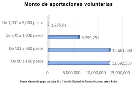 Del 1 de enero de 2018 al 30 de noviembre de 2023 se realizaron 33 157 632 aportaciones voluntarias (que son aquellas aportaciones hechas por el trabajador con un monto igual o mayor a 50 pesos que no incluye ahorro solidario).