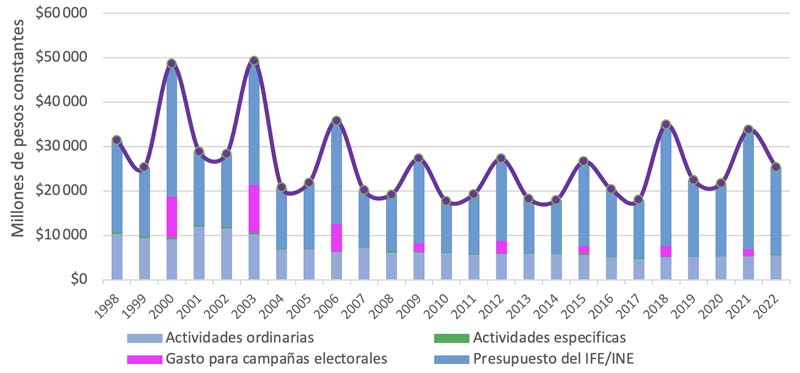 Gráfica 1. Gasto electoral por año desde 1998 hasta 2022