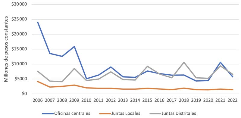 Después de la negativa de la Cámara de Diputados para autorizar el presupuesto del Instituto Nacional Electoral (INE) para realizar la revocación de mandato este 2022, nuevamente surge a colación la discusión sobre el costo de la organización de las elecciones. En este texto damos cuenta de los datos presupuestales y, sobre todo, nos referimos a las recomendaciones que hicimos en 2017 cuando esta discusión salió a flote. Todos los montos están deflactados a precios de 2021. Los presupuestos son a partir de los Presupuestos de Egresos de la Federación, las Cuentas Públicas, y lo que reportó el INE en su gasto anual ante el Consejo General (es decir: no todos los disponibles).