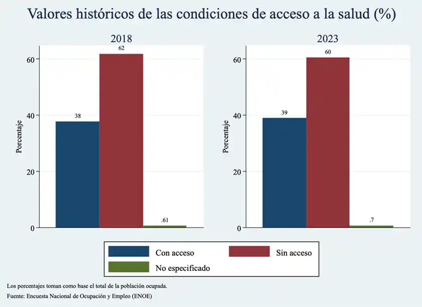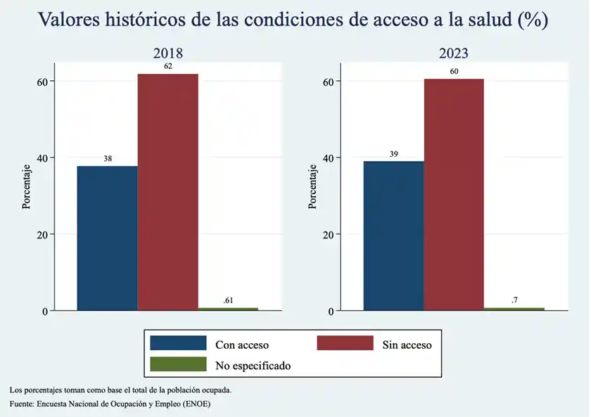 Las gráficas 1 a 5 ilustran claramente la continuidad del fenómeno de la informalidad y del deficiente acceso a los servicios de salud en el sexenio actual.