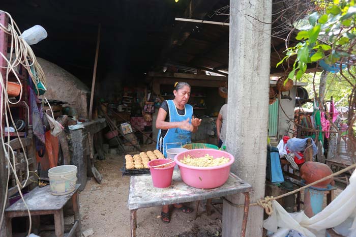 “Está caro el camarón, a doscientos pesos el kilo. Antes costaba entre cincuenta y ochenta pesos”, se lamenta. Doña Roselia hunde la mano en la masa y la moldea en forma de bolita.