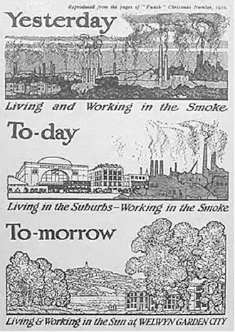 El modelo se basaba en un conjunto de círculos concéntricos; al centro habría un parque comunitario rodeado de museos, teatros, hospitales, iglesias y otros servicios urbanos. Alrededor de este primer círculo, habría vialidades ybulevaresque, a su vez, separarían terrenos de mínimo 180 m2 para la construcción de casas con jardín. Más que una propuesta urbana, las ciudades jardín eran un proyecto social que pretendía la autosuficiencia y en el que las relaciones entre sus habitantes (máximo 32 000 personas) se regirían por un sentido de comunidad y de bienestar colectivo.