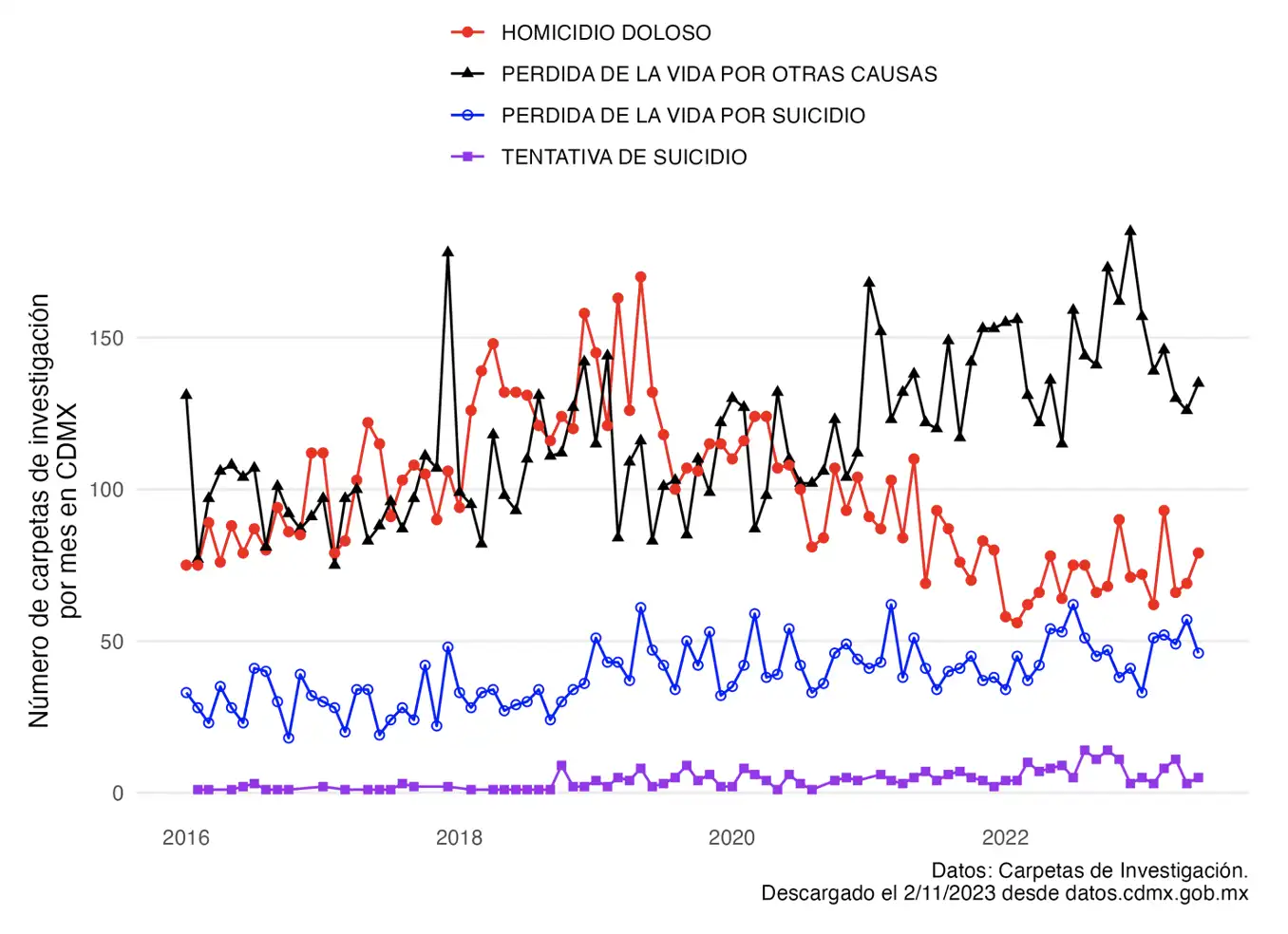 Ambas hipótesis tienen serias implicaciones. De ser cierta, la hipótesis del teléfono descompuesto implica que la FGJ no es capaz de determinar e informar al público las causas de defunciones. Así sin más. ¿Qué implicaciones tendría esto para Ernestina Godoy y para una Fiscalía a la que con frecuencia se le señala subordinación al gobierno de CDMX? Además, de corresponder los EIND con suicidios, ¿qué dice esto de una ciudad que en 2019 actualizó protocolos de prevención y criterios de clasificación y que hoy presume de tener doce “acciones permanentes” para prevenir el suicidio? De resultar ciertas, las hipótesis de Romero y Pérez Ricart supondrían una crisis en la gestión cotidiana de la FGJ y su interlocución con otras dependencias, o bien una crisis de la atención a la salud mental en la ciudad. En ambos casos los resultados no son triviales en un país en el que la vida parece haber perdido valor.