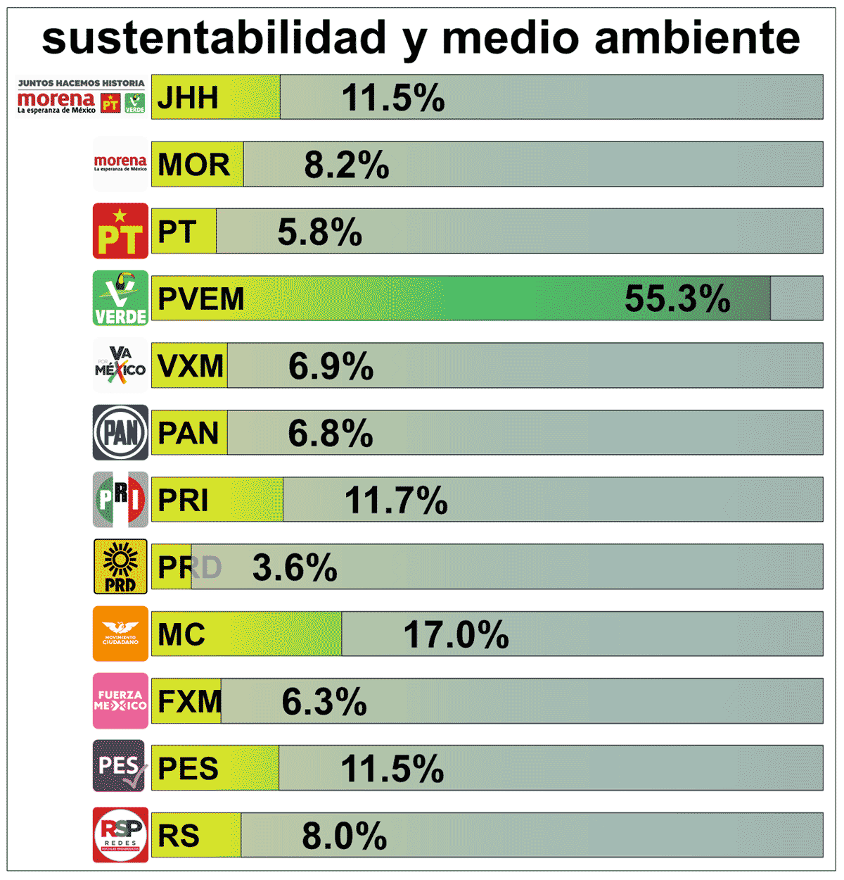 Figura 6. Propuestas y motivaciones, por partido o coalición, que hablan de ecología, sustentabilidad y medio ambiente.