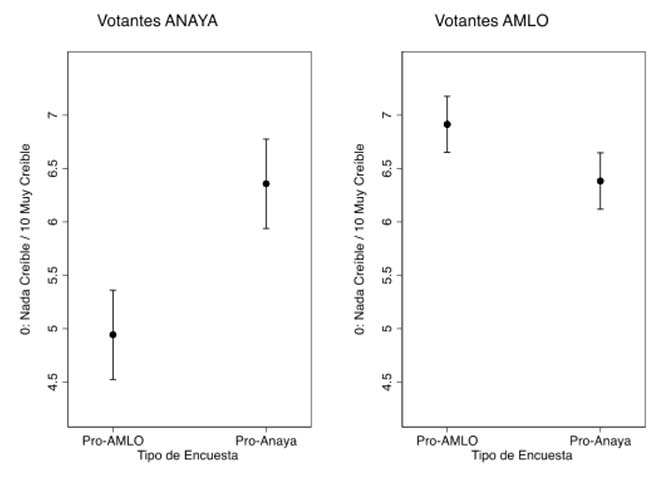 ¿Qué nos dicen estos resultados sobre el electorado mexicano? Por un lado, existen buenas noticias: existe un cierto grado de sofisticación en el electorado mexicano. Los votantes tienen conocimiento sobre qué candidato va en primer lugar, segundo lugar, tercer lugar en las preferencias electorales según los estudios reportados por los medios de comunicación. Por el otro lado, como suele suceder en otros países, la identidad partidista tiene un papel central en el proceso de formación de opinión pública. En este caso en particular, los votantes creen que las encuestas son más creíbles cuando a su candidato le va bien, y viceversa, cuando a su candidato le va mal, creen que la encuesta es menos creíble.